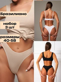Трусы бразильяна хлопок набор 3 шт белые, черные, бежевые