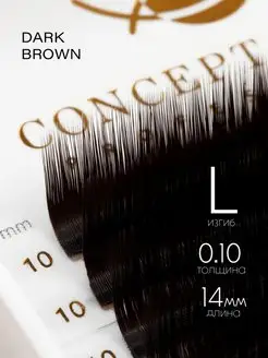 Ресницы для наращивания тёмно-коричневые, L, 0.10, 14 мм