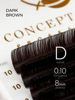 Ресницы для наращивания тёмно-коричневые, D, 0.10, 8 мм