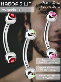 Набор пирсинга в бровь в губу микробанан банан пупок 3 шт
