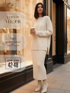 Трикотажный костюм с юбкой вязаный