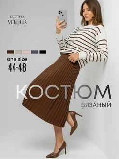 Трикотажный костюм с юбкой плиссе вязаный