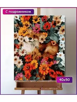 Картина по номерам на холсте 40х50 Лиса в цветах Лисичка