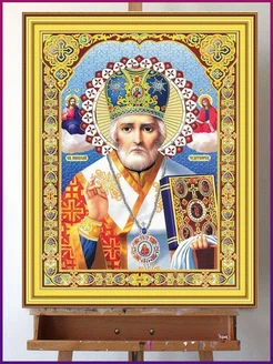 Алмазная мозаика на подрамнике 40х50 Икона Николай Чудотвор