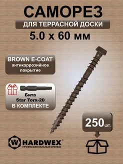 Саморезы для террасной доски 5х60 мм, набор 250 шт