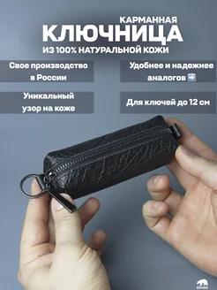 Кожаная карманная ключница на молнии в сумку ручной работы