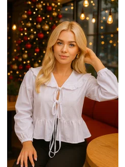 Блузка с завязками и воротником в офис