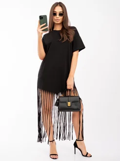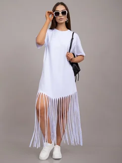Платье футболка летнее с бахромой