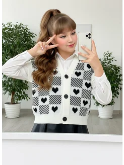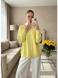 Кардиган женский укороченный на пуговицах оверсайз теплый