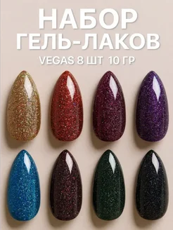 Набор гель лаков для ногтей с блестками 8 шт по 10 гр