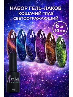 Набор гель лаков для ногтей кошачий глаз светоотражающий 6 ш…