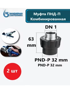 Муфта ПНД DN 32-1НР, Комбинированная, под пайку, 2 шт