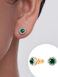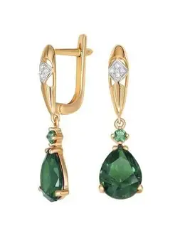 Серьги золотые 585 пробы с изумрудами и бриллиантами