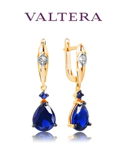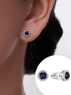 Серьги пусеты золотые 585 пробы с сапфирами и бриллиантами