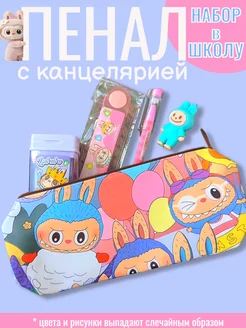 Школьный пенал косметичка "Лабубу" с канцелярией