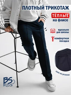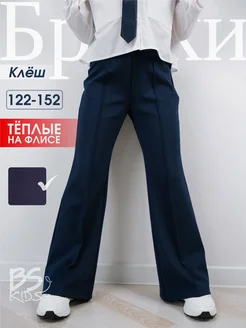 Утепленные синие школьные брюки клеш на флисе со стрелкой