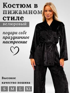 Велюровый домашний костюм кимоно с брюками