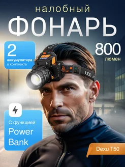 Фонарь налобный туристический 800 люмен с Power Bank