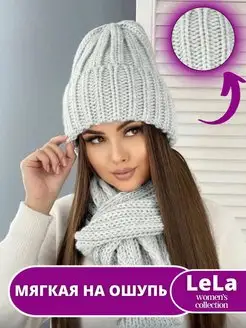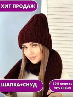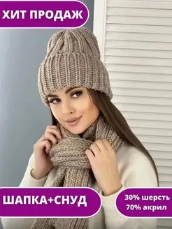 шапка женская зимняя вязаная (шапка и снуд)