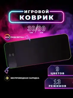 Коврик для мыши с подсветкой RGB 80*30 беспроводная зарядка
