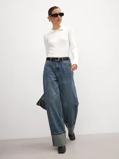 Джинсы с подворотами прямые широкие