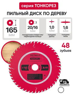 Пильный диск по дереву 165 мм Тонкорез ( 48Т 20 16 мм)