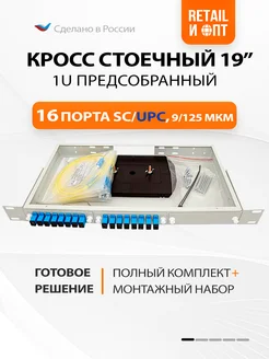 Кросс стоечный 19'' Комплект 1U, 16 портов SC UPC, 9 125