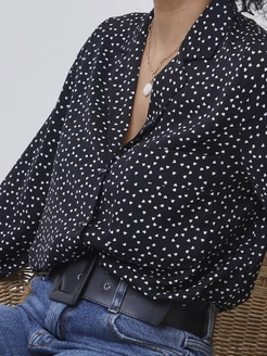 Рубашка оверсайз нарядная в сердечко с длинным рукавом