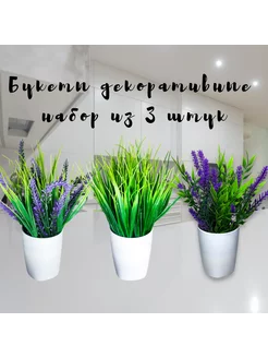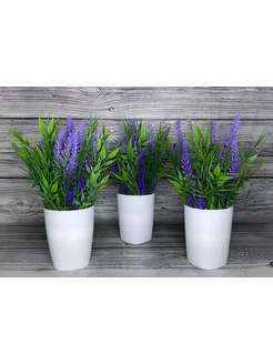 Декоративные цветы Лаванда и бамбук 3 шт в кашпо
