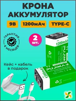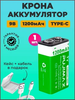 Крона аккумуляторная с зарядкой Type-C (1шт, 1200мАч, 9В)