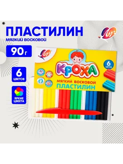 Пластилин мягкий (восковой), 6 цветов, 90 г, "Кроха", со сте