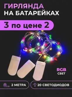 Новогодняя гирлянда на батарейках роса 2м 3шт