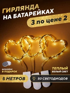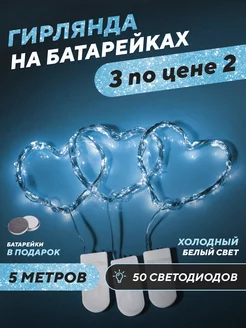 Новогодняя гирлянда на батарейках роса 5м 3шт