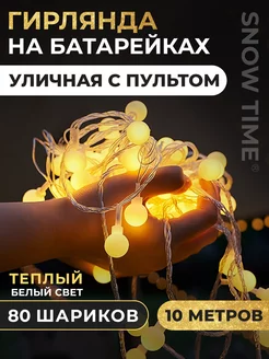 Уличная новогодняя гирлянда на батарейках шарики 10м