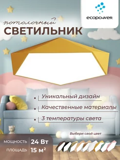 Люстра потолочная светодиодная, желтая, пятиугольник
