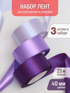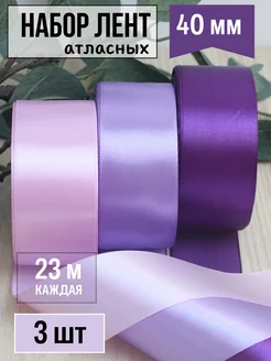 Набор атласных лент 4 см (3 шт) сиреневый