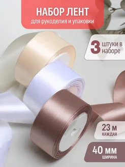 Набор атласных лент 4 см (3 шт) бежевый