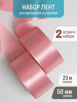 Лента атласная 5 см (2 шт) пыльно-розовая