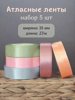 Набор атласных лент 25 мм (23 м) 5 шт пастельные цвета