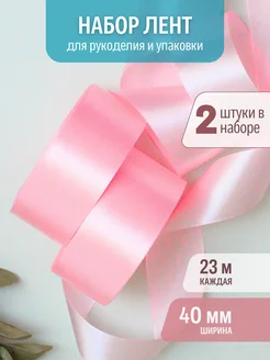 Лента атласная 4 см (2 ленты) бледно-розовая