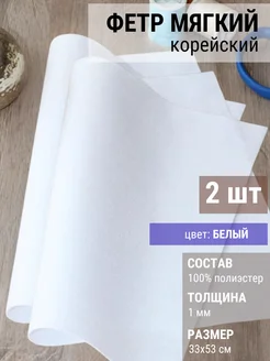 Фетр мягкий корейский 2 шт (33-53 см) 1 мм белый