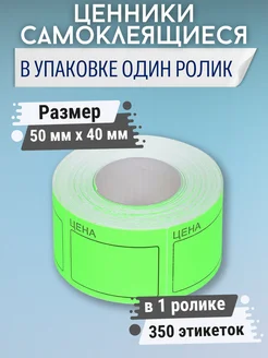 Ценники самоклеящиеся 50х40 мм 350 этикеток зеленые