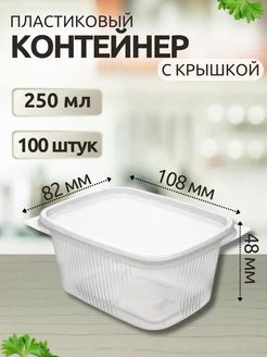 Контейнеры одноразовые пластиковые с крышкой 250 мл 100 штук