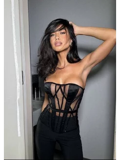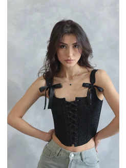 Корсет-топ черный вечерний с декоративной шнуровкой