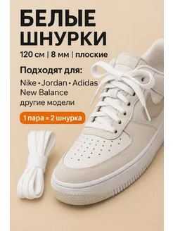 Шнурки для кроссовок и кед 120 см белые, прочные, 8 мм