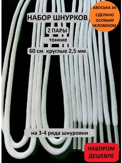 Набор 2 пары шнурков круглые для ботинок белые, 60 см