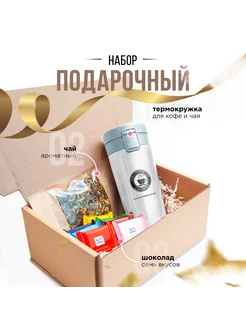 Подарочный набор с термокружкой, чаем и шоколадом