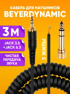 Кабель пружина для наушников 3 м, Jack 3.5 + Jack 6.3
