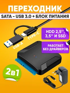 Переходник USB 3.0 на SATA 3 (7+15 pin 22 pin) с питанием