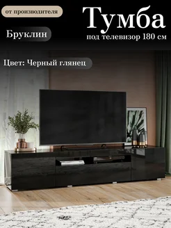 Тумба под телевизор длинная Бруклин 180 см черная глянцевая